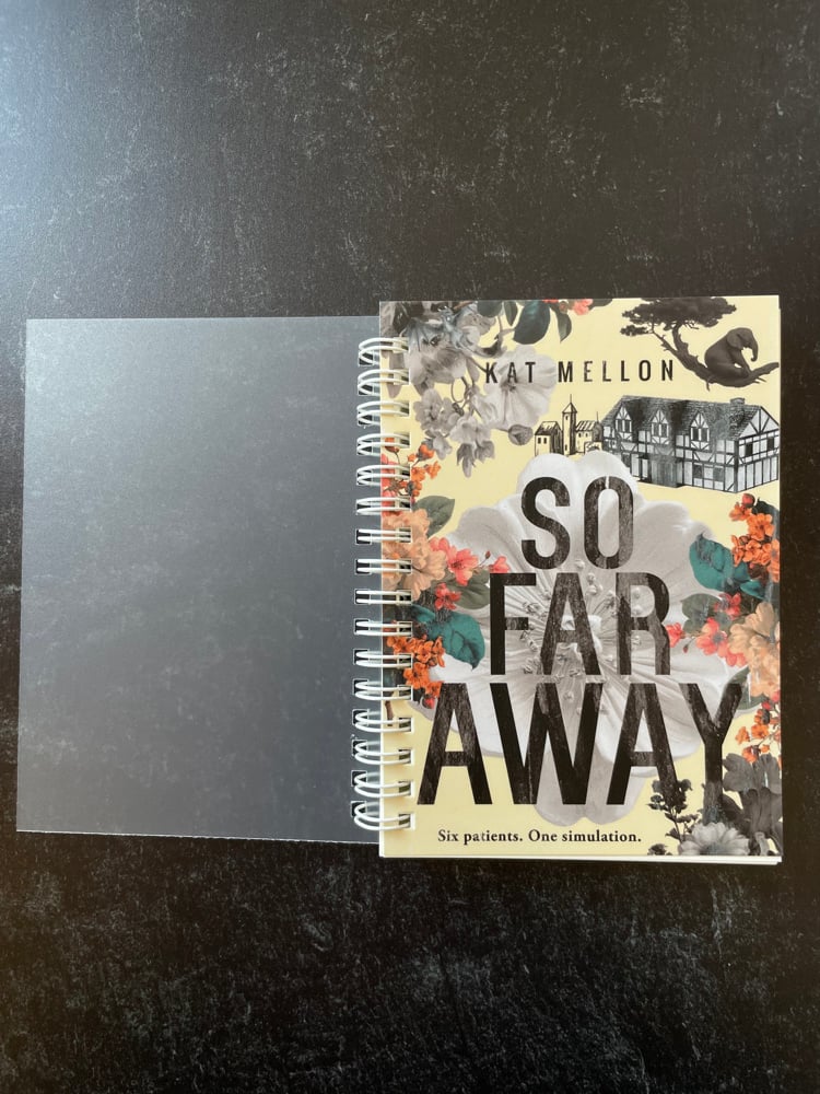 A fun notebook and a great excuse to carry around the So Far Away cover! Paper is unlined. The pen ink color is black. Pens won’t be shipped individually due to high shipping costs.